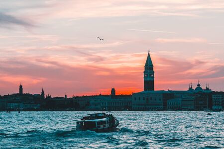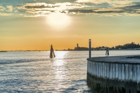 VENICE, ITALY - SEPTEMBER 06 2013: Sunset in the historical city of Venice, Italy. View on the Laguna