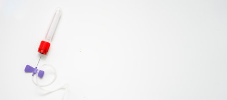 single use venipuncture butterfly needle and test tubes to draw blood sample