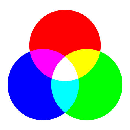 Blue RGB and CMYK color mixing icon isolated on white background. Vector.