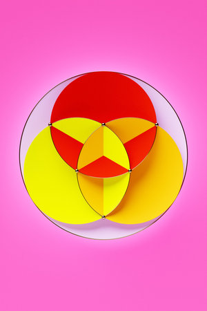 A design featuring two overlapping circles with a vibrant red section in the intersecting area.