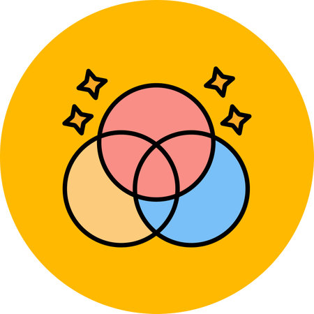 Color venn diagram, graph circle general intersection. Way of displaying information in the form of crossing circles. Mathematical infographic. 3 intersection area. Vector