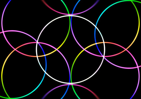 Colorful circular graphic with intersecting shapes on a black background