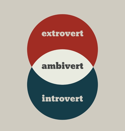 extrovert, ambivert and introvert metaphor. image relative to human psychology. overlapped circles diagram