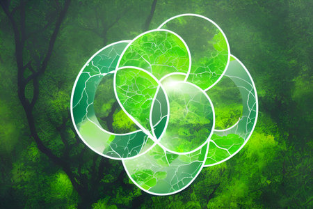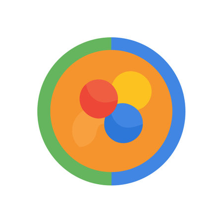 Vibrant venn diagram with three overlapping circles in orange green and blue hues forms the design.