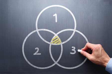 Venn diagram on blackboard. Business man drawing three circles.