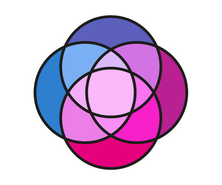 Colored Venn Diagram with 4 Circles. Circular Infographic Template. Four Intersected Circle Empty Chart. Round Graphic for Management and Business Process. Isolated Vector Illustration