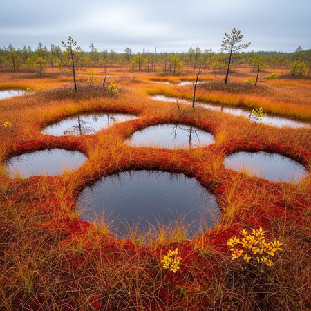 Autumn swamp in the taiga of Kemeri national park, Latvia