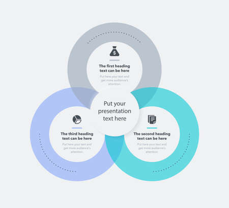 Venn diagram 3 circle with dotted line chart infographic sign.