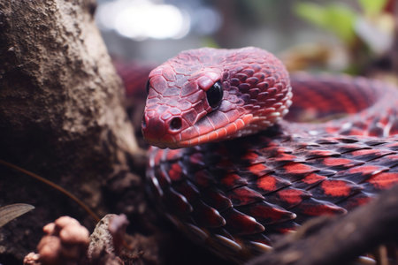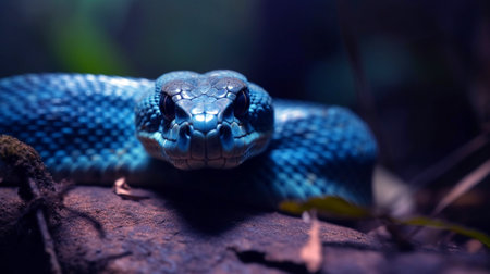 An up-close snapshot of a venomous Blue Viper snake. Generative AI