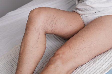 Detail of varicose veins on the leg of a seated woman.