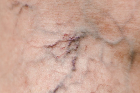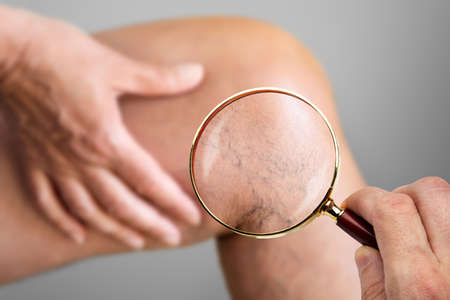 close up of a human skin with varicose veins on it