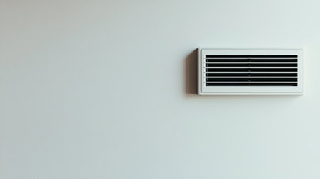 This image showcases a ventilation grate mounted on a wall, with soft shadows enhancing a tranquil and modern interior design aesthetic.