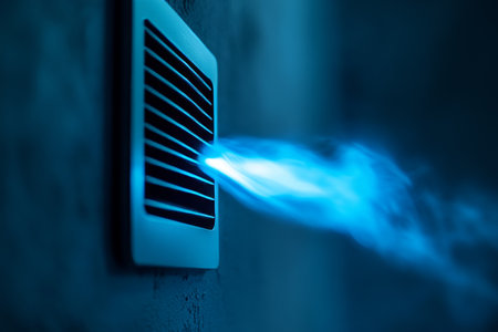 Close up of home wall air vent emitting refreshing blue air for optimal cooling effectiveness