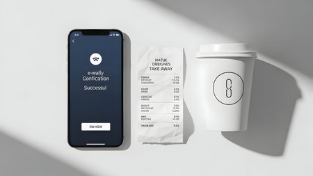 Smartphone with menu app and coffee cup on white background. Concept of fast food delivery.