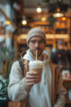 Man drinking a drink in a cafe