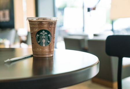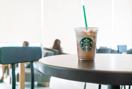 Bangkok Thailand, Jul 10 2016 : Iced chocolate frappuchino on table in Starbuck cafe