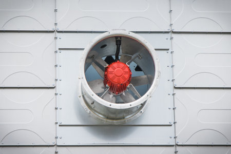 Powerful industrial fan is working to cool machinery in a factory setting