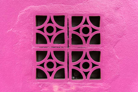 Metal air vent grid in pink wall ventilation grille close-up as background.valentine concept.