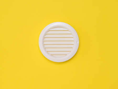 Round ventilation grille on a bright yellow background. Devices for fresh air supply.