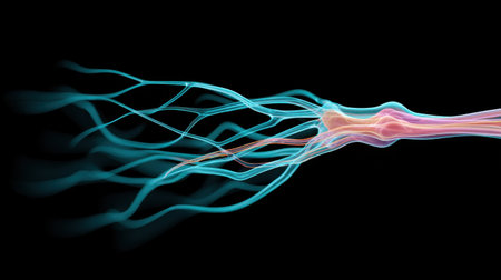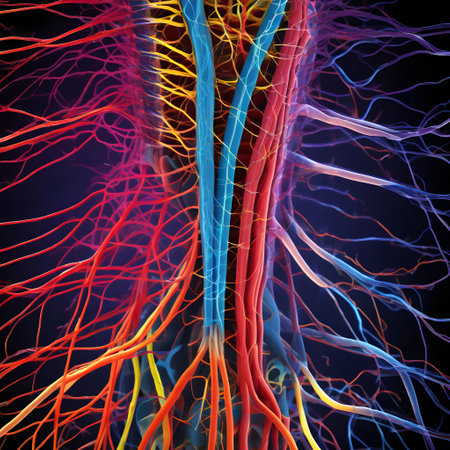 This artwork reveals a serene portrayal of nerves flowing harmoniously, showing delicate connections and a soothing color palette for visual tranquility.