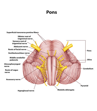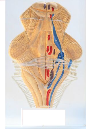 Scheme of the projection of the nuclei of cranial nerves closeup at the anatomy drug-dummy