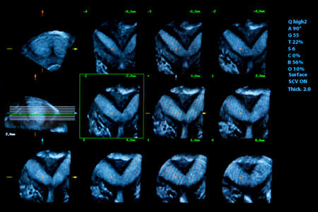 Prostate picture in the hand of a doctor, ultrasound of the prostate on a white background.