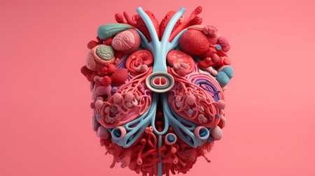 3D illustration mockup of the human organ system, Anatomy, Nervous, circulatory, digestive, excretory, urinary,and bone systems. Medical education concept, Generative AI illustration