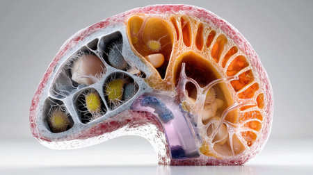Cardio structure cutaway heart anatomy model showing the internal chambers, valves, and vessels in detailed form, ideal for medical study and educational visualization.