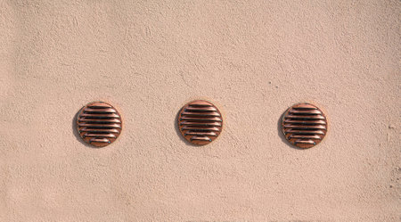 three air intakes in a rustic wall. Shot in Alghero, Italy.