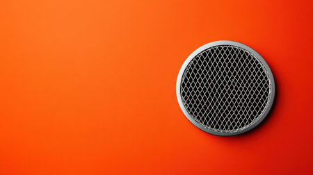 This image features a modern circular speaker grille design against a vibrant orange background. The detailed texture and patterns create an engaging visual that suits various artistic and technological themes.