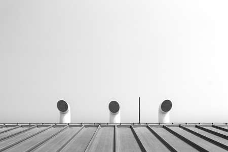 lightning copper rod on red roof with air ventilation tube industry construction concept background