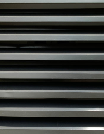 Panorama of Silver louvered aluminum wall pattern and background seamless