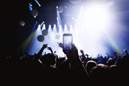 Making video recordings and pics on a smartphone at the concert or light show for publishing on social media.