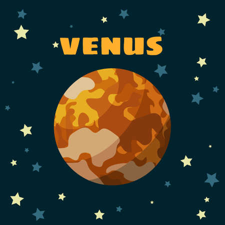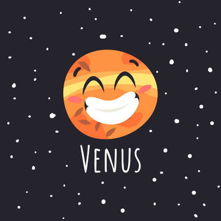 Hand Drawn Childish Illustration Cosmos. Vector Drawing Planet in Space. Cartoon Solar System object Venus
