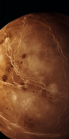 a close-up photo of venus showcasing its stunning beauty and elegance. the image captures the moonwalk-like surface, with clearly-defined features and sharp contrast. shot with a 100mm lens at f/2.0, the natural lighting enhances the realistic and impressive details. the photo, taken in 8k uhd, highlights the aridifying landscape and shallow roots depth of field, creating an unstable yet captivating scene. ai generated