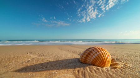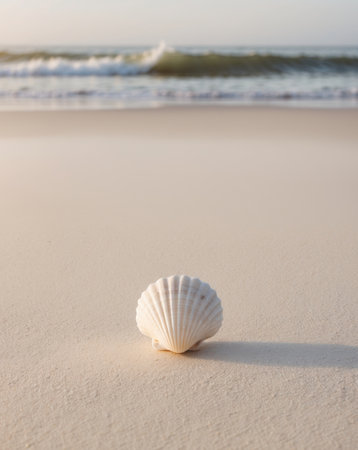 Capture the essence of a perfect beach day with this stunning seashell on a sandy shore. Ideal for travel, wellness, or coastal-themed projects. Evokes a sense of calm and escape.