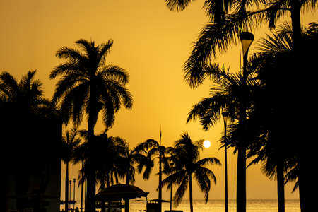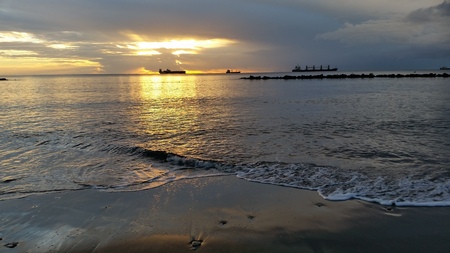 Beautiful sunset on the Black sea. Gold sea sunset.Poti, Georgia.