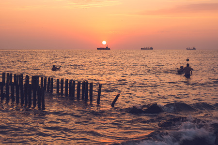 Colorful sunset in the Black Sea, Poti, Georgia.