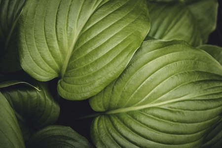 Beautiful floral background with bright green leaves of hosta (Hósta) in a flower garden