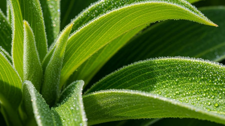 Background from green textured plants Beautiful vivid shiny green grass. Pure, pleasant, greenery with macro.