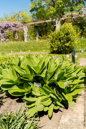 Zurich, Switzerland, March 30, 2024 Veratrum Nigrum or black false hellebore plant at the botanical garden