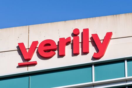 Feb 2, 2020 South San Francisco / CA / USA - Verily sign at their headquarters in Silicon Valley; Verily Life Sciences is Alphabet Inc.'s research organization devoted to the study of life sciences