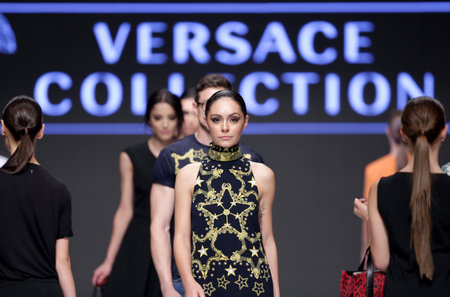 Sofia, Bulgaria - September 12, 2016: A female model walks the runway during the Autumn/Winter Sofia Fashion Week Show 2016 in Sofia, Bulgaria. Versace collection