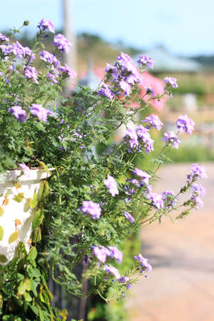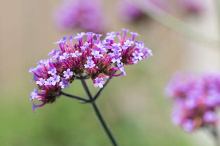 Purple verbena growing in the garden. Beautiful blooming verbena.