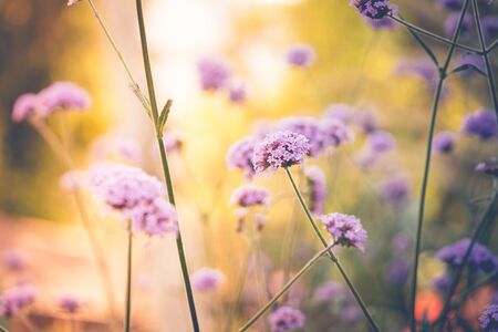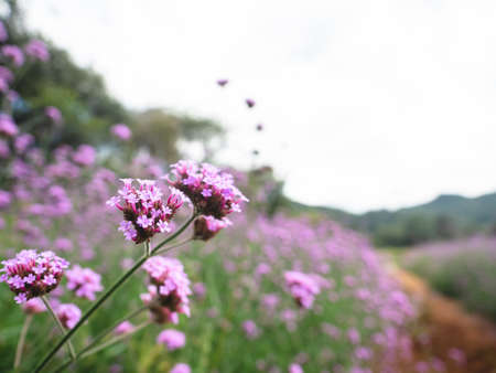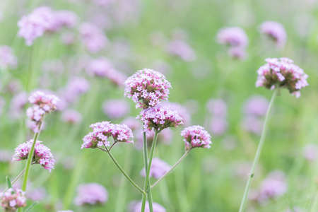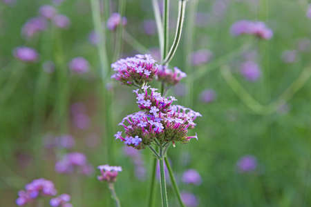 Beautiful blooming Verbena, Violet flowers with blurred background (Verbena bonariensis)