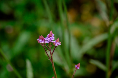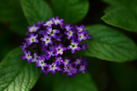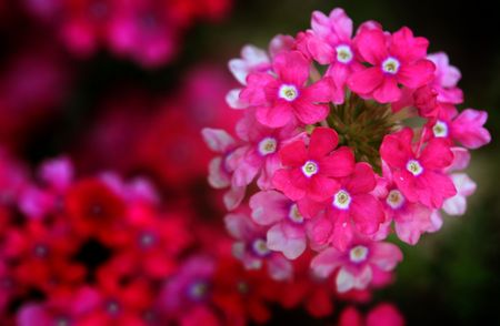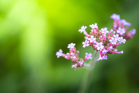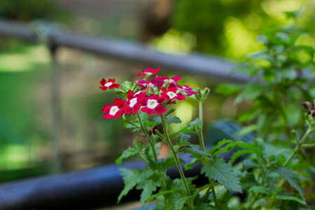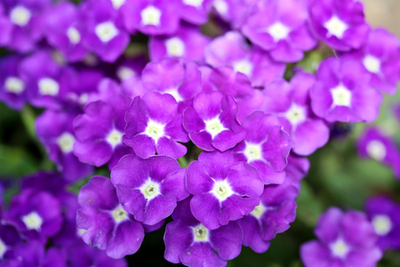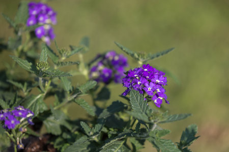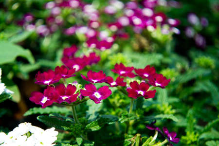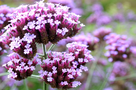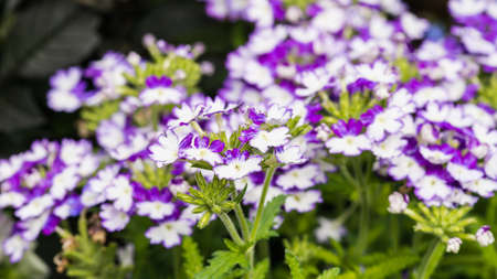 Verbena hybrid flowers blooming in park. Close up with selected focus