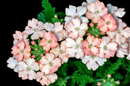 Verbena hybrida Peaches and Cream. Pastel coloured salmon verbena flowers