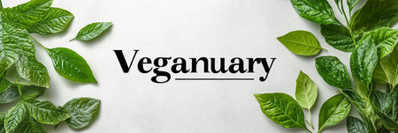 Banner with leaves with the inscription Veganuary. Vegan lifestyle