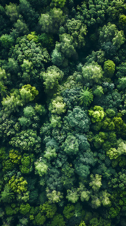 Experience the beauty of a lush green forest canopy captured from above. This vibrant image showcases the natural diversity and tranquility of nature.