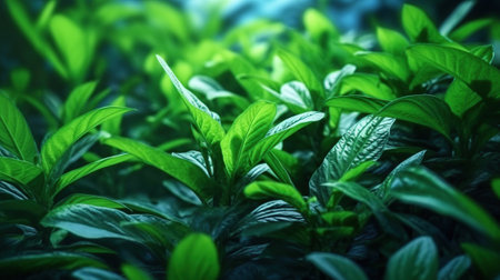 Lush greenery texture with glossy leaves for nature-themed design and decoration